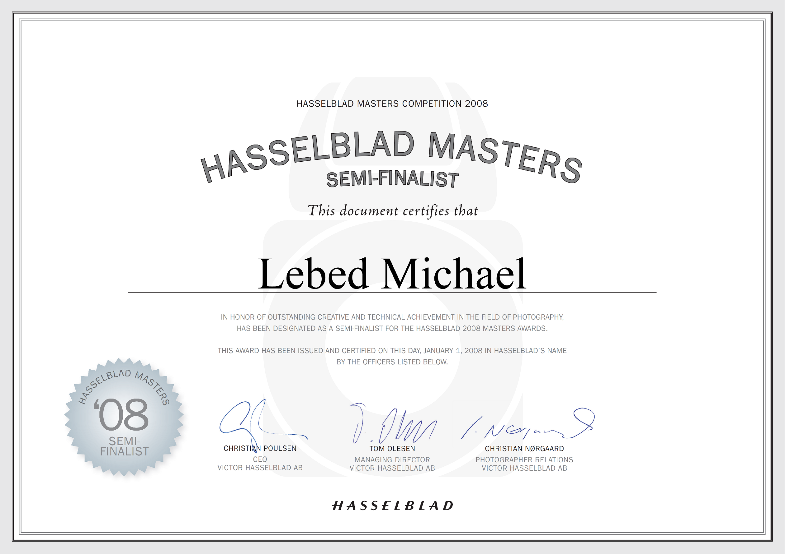 Der "Hasselblad Masters Award" ist eine der angesehensten Auszeichnungen der Industrie, die jedes Jahr an herausragende Fotografen verliehen wird. Dabei werden allgemeine fotografische und technische Fähigkeiten, Kreativität, Komposition und Konzept beurteilt.